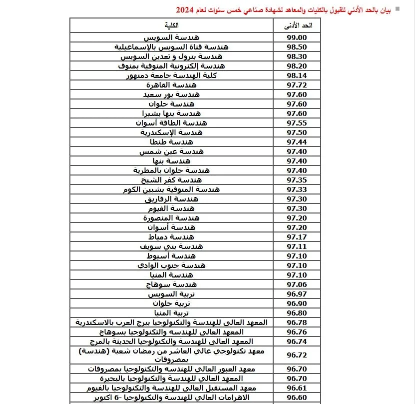 كليات الهندسة: يتوقع أن يبدأ الحد الأدنى للقبول بنسبة 97% للطلاب من نظام الثلاث والخمس سنوات.