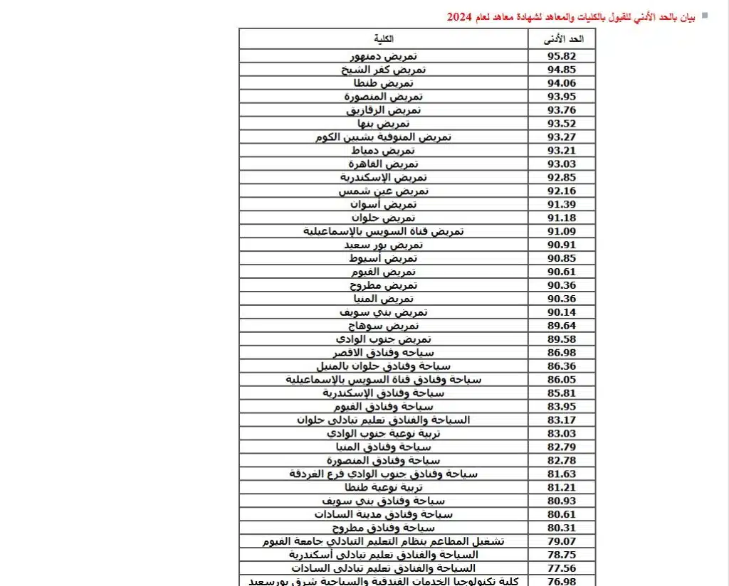 كليات التربية: من المتوقع أن يبدأ الحد الأدنى من 91%.
