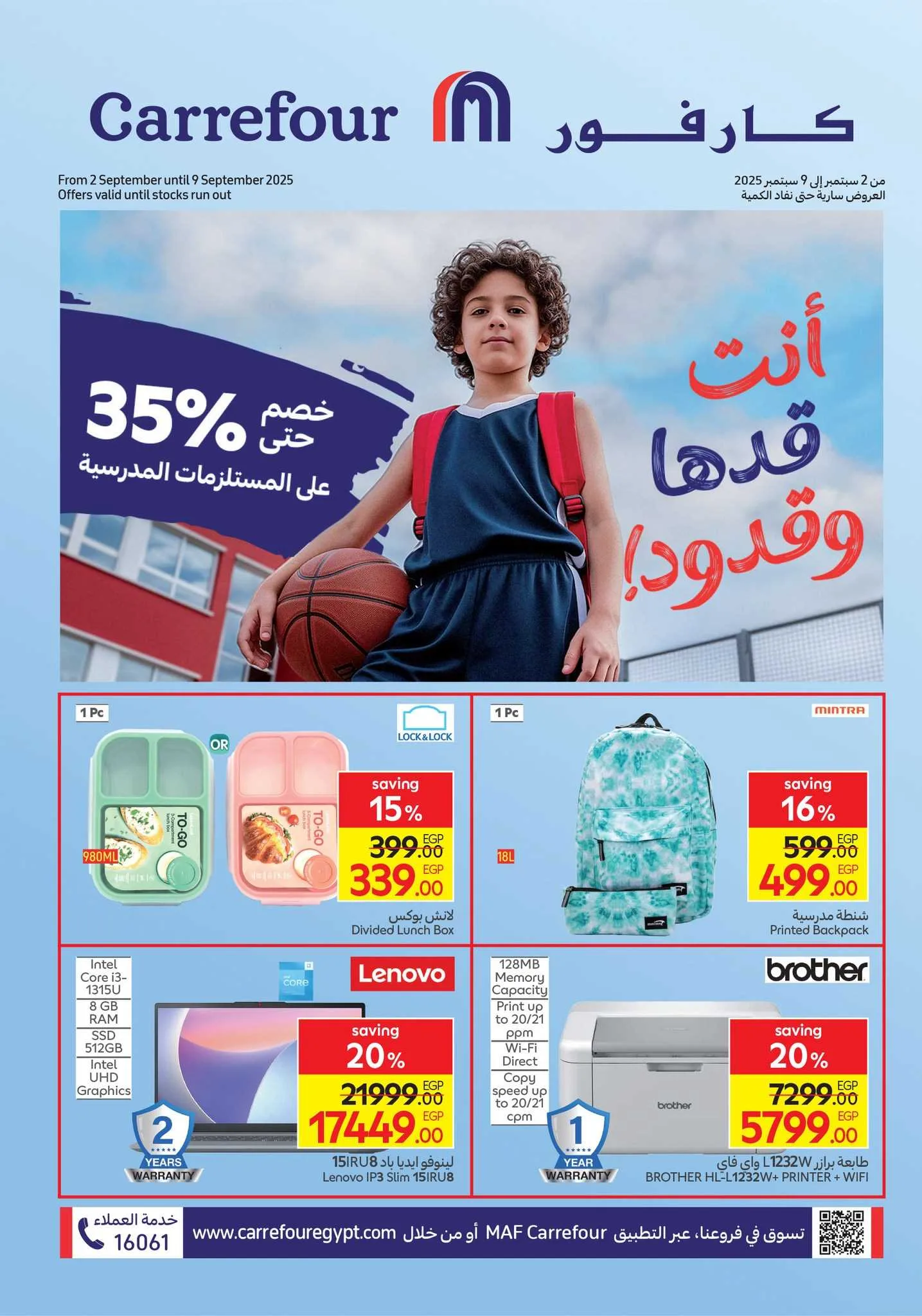 تسري عروض كارفور من 3 سبتمبر حتى 9 سبتمبر 2025، وتركز بشكل أساسي على المستلزمات المدرسية لجميع المراحل التعليمية. وتشمل العروض: