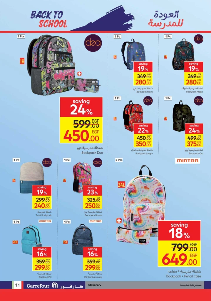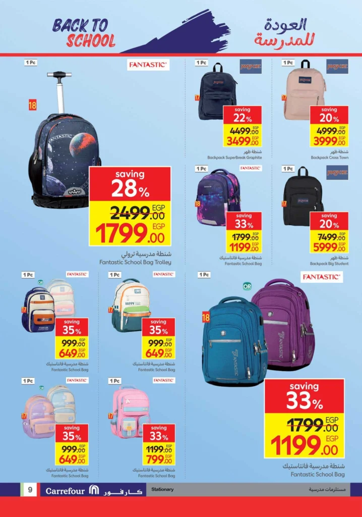 تسري عروض كارفور من 3 سبتمبر حتى 9 سبتمبر 2025، وتركز بشكل أساسي على المستلزمات المدرسية لجميع المراحل التعليمية. وتشمل العروض: